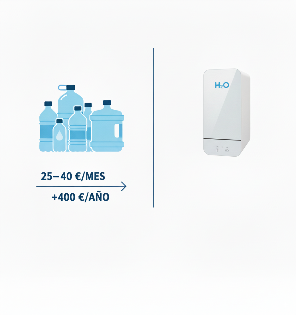 Un hogar medio en España gasta entre 25 y 40 € al mes en agua embotellada. En un año, esto supone más de 400 €. Con un purificador de agua doméstico, ese gasto se reduce drásticamente, ya que solo requiere un mantenimiento periódico.